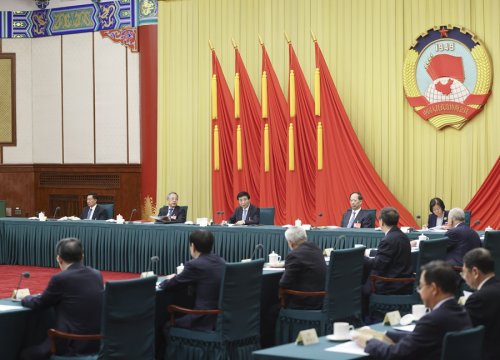 3月9日下午,政协第十四届全国委员会常务委员会第六次会议在北京举行。中共中央政治局常委、全国政协主席王沪宁主持会议。新华社记者 丁海涛 摄