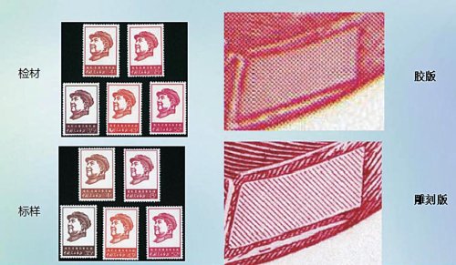 印刷版别是邮票真伪鉴别最本质最重要的鉴别特征,所以要识别假邮票就需要掌握不同版别的印刷特点。而且,邮票印刷厂的印制设备也是仿印假票的小作坊所无法比拟的,仿印的假票无法达到与真邮票在印刷制版上完全相同,通过印刷版别的比对可以辨别检材的真伪。