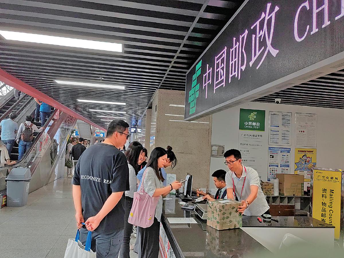 广交会邮局为采购商提供商品和样品寄递服务。 □吴阳山 摄