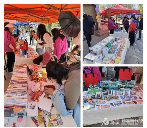 4月23日,在五家渠市第十九届郁金香文化旅游节上,市民李莉发现一个名为“‘郁’见春天”的时光邮局,在这里可以打卡拍照、选购郁金香主题的明信片、盖邮戳。