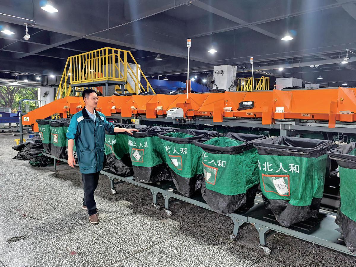 渝北区人和揽投部内,工作人员依次检查邮件落格情况。□邬寅啸 摄