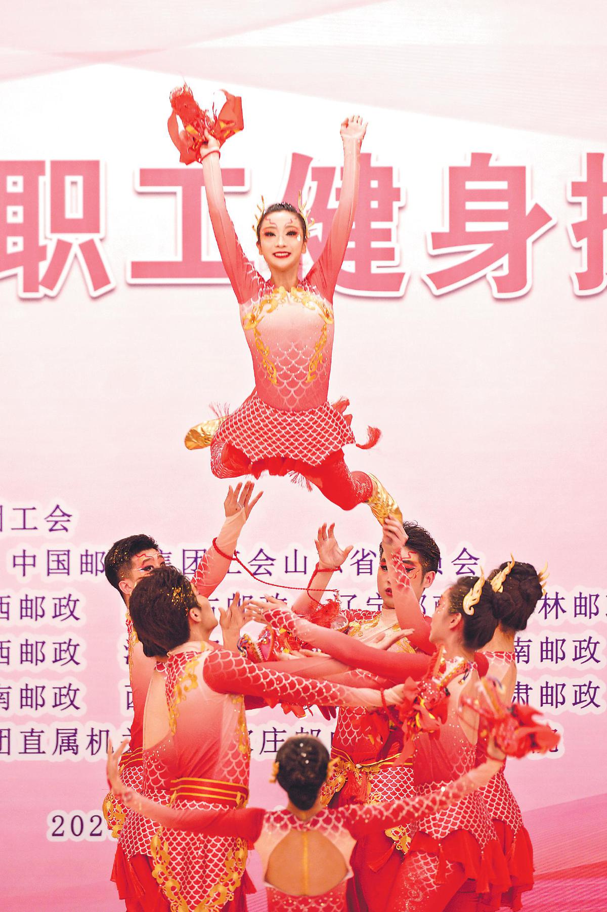 黑龙江邮政代表队队员的表演以“龙”为主要元素,开场时的高难度动作赢得了全场的喝彩。
