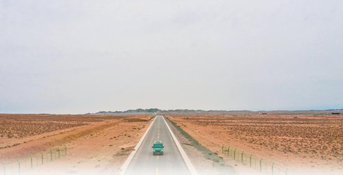 5月22日,采访组乘坐汽车赶往马鬃山镇。215国道沿途的戈壁荒漠给人以辽阔、壮丽、肃穆、深邃的感觉。蓦然间,一抹亮丽的绿色浮现眼前,是前往马鬃山镇的邮车!在这荒凉的戈壁滩上,中国邮政没有缺席。