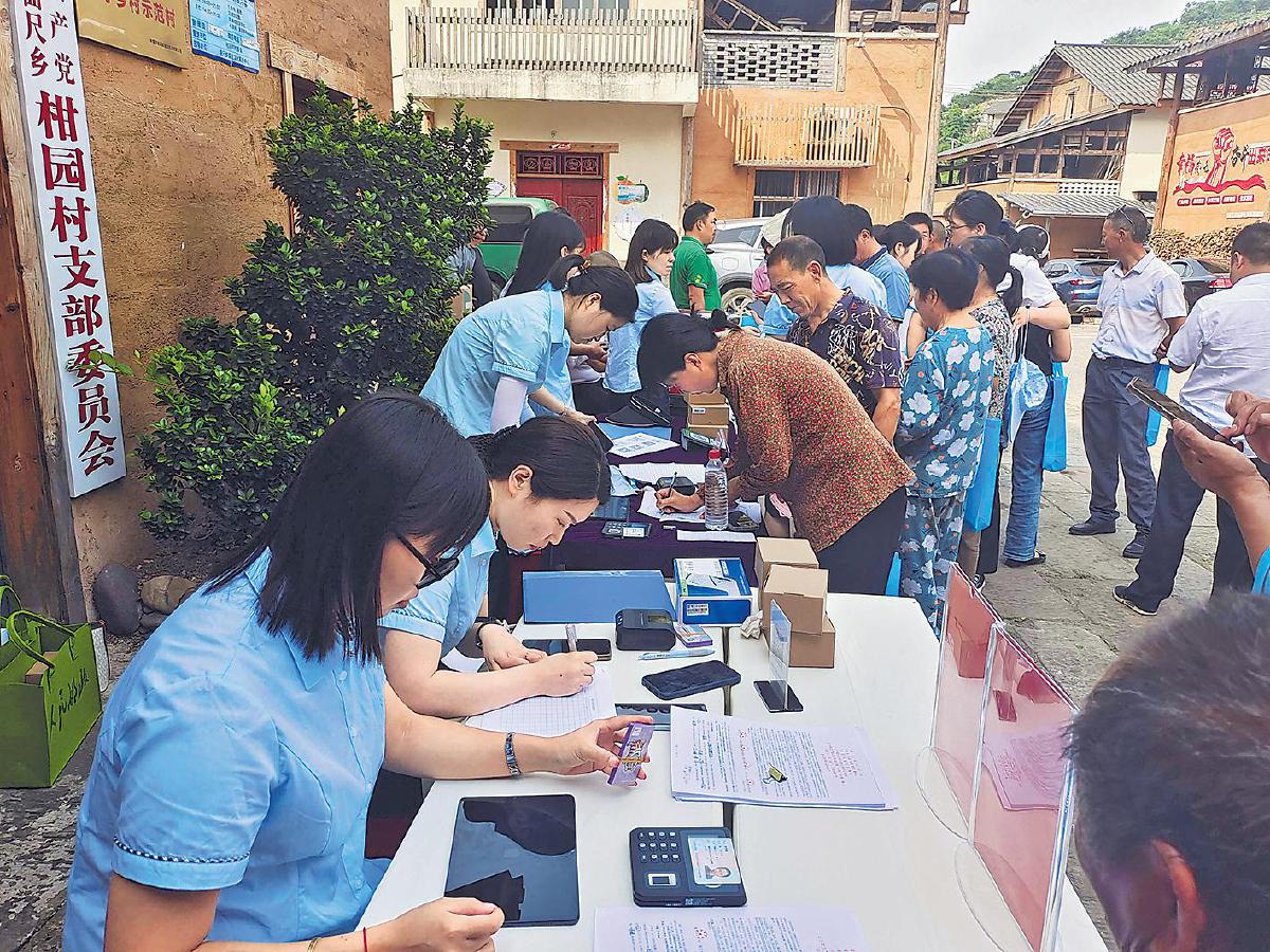 巫山邮政送普惠金融进村,为果农办理金融业务。