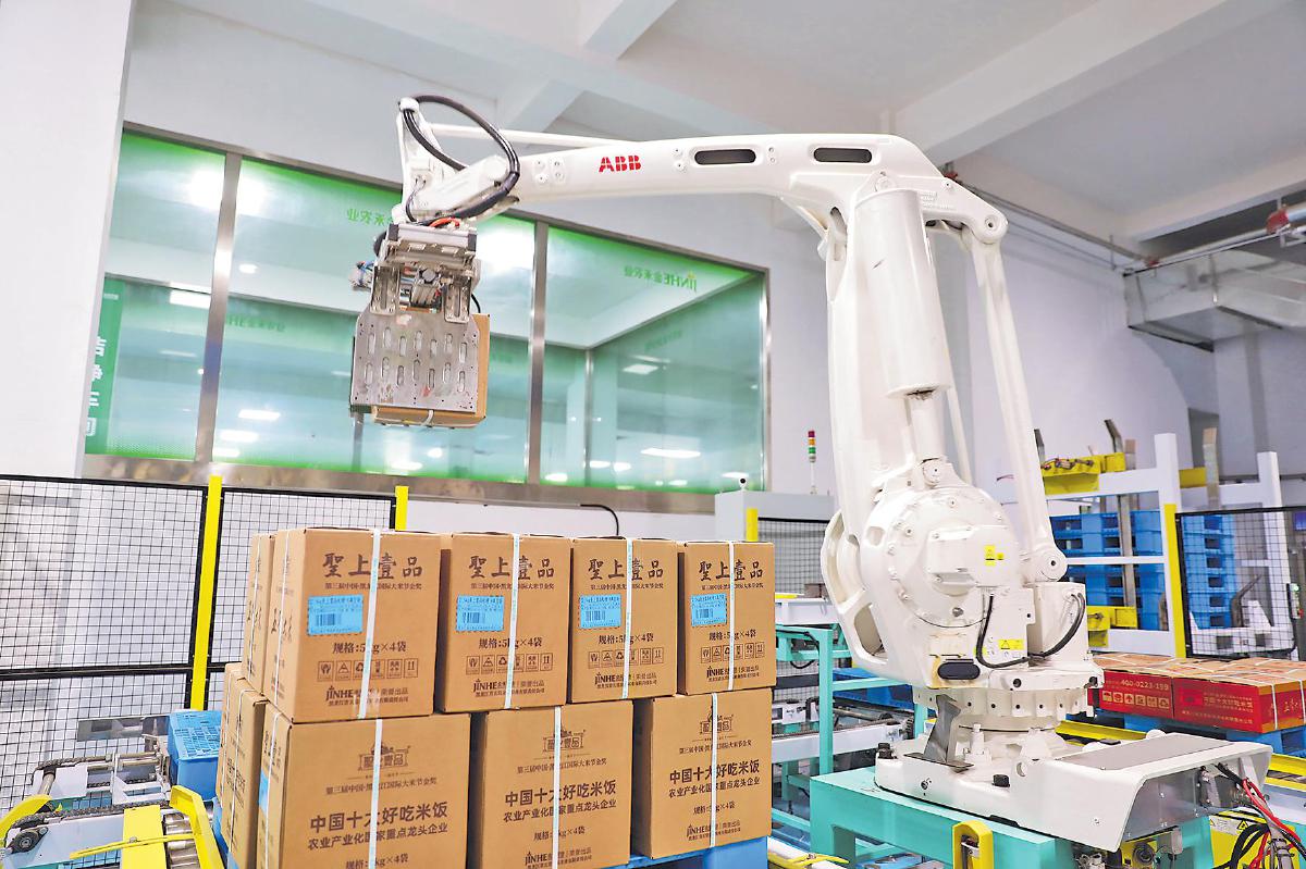 听说邮储银行的人前来调研,本来临时要出差的五常市金禾米业有限责任公司董事长李云辉将出行时间硬是推迟1小时,只为能见上一面。当看到金禾米业生产线上两台“ABB”数控机器臂正在精准分拣包装好的盒装高端稻米产品时,记者不禁感叹:“普通的大米居然能做得如此高科技!”