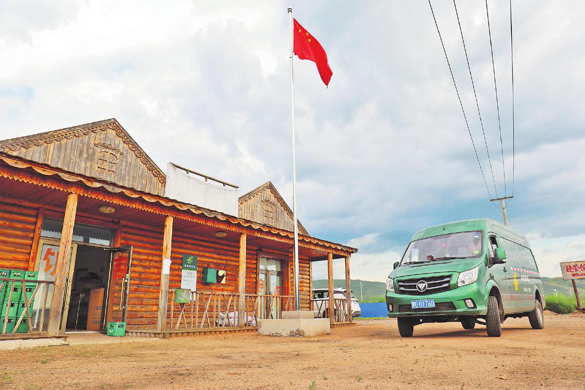 沿着额尔古纳河一路前行,每隔一段距离就能看到醒目的标识牌——“请勿越界”。当一面鲜艳的国旗映入眼帘时,采访组来到了此行的目的地——八卡村。八卡村地广人稀、位置偏远、交通不便,在边境村通邮前,村民只能自行到100多公里外的额尔古纳市取邮件,或由村民相互捎带再到周边乡镇去领取,费时费力,极不方便。如今,呼伦贝尔市邮政分公司在村口的晓莹便利超市叠加了便民服务站点。看见邮车抵达,老板吴华北高兴地跑出来接邮件。他笑着说:“现在村民来店里买东西时,就能顺便取走包裹。邮政服务为老百姓带来了很大的方便!”