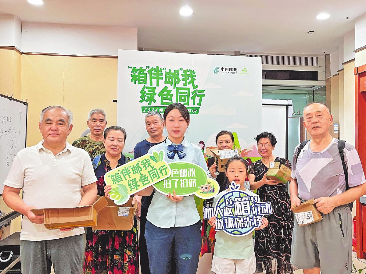 近日,山东省青岛市邮政分公司开展了绿色邮政建设宣传活动,在科普绿色环保知识的同时,邀请居民及消费者加入“返箱”行动,宣传邮政绿色发展理念,提升品牌形象。各邮政网点营业人员邀约客户参与活动,活动现场开设绿色邮政小课堂,由网点人员为到场客户讲解绿色包装、节能减排等环保知识。同时,在各网点都设置了绿色回收箱,并向参与回收行动的客户赠送精美小礼品,鼓励减少资源浪费,促进循环发展。
