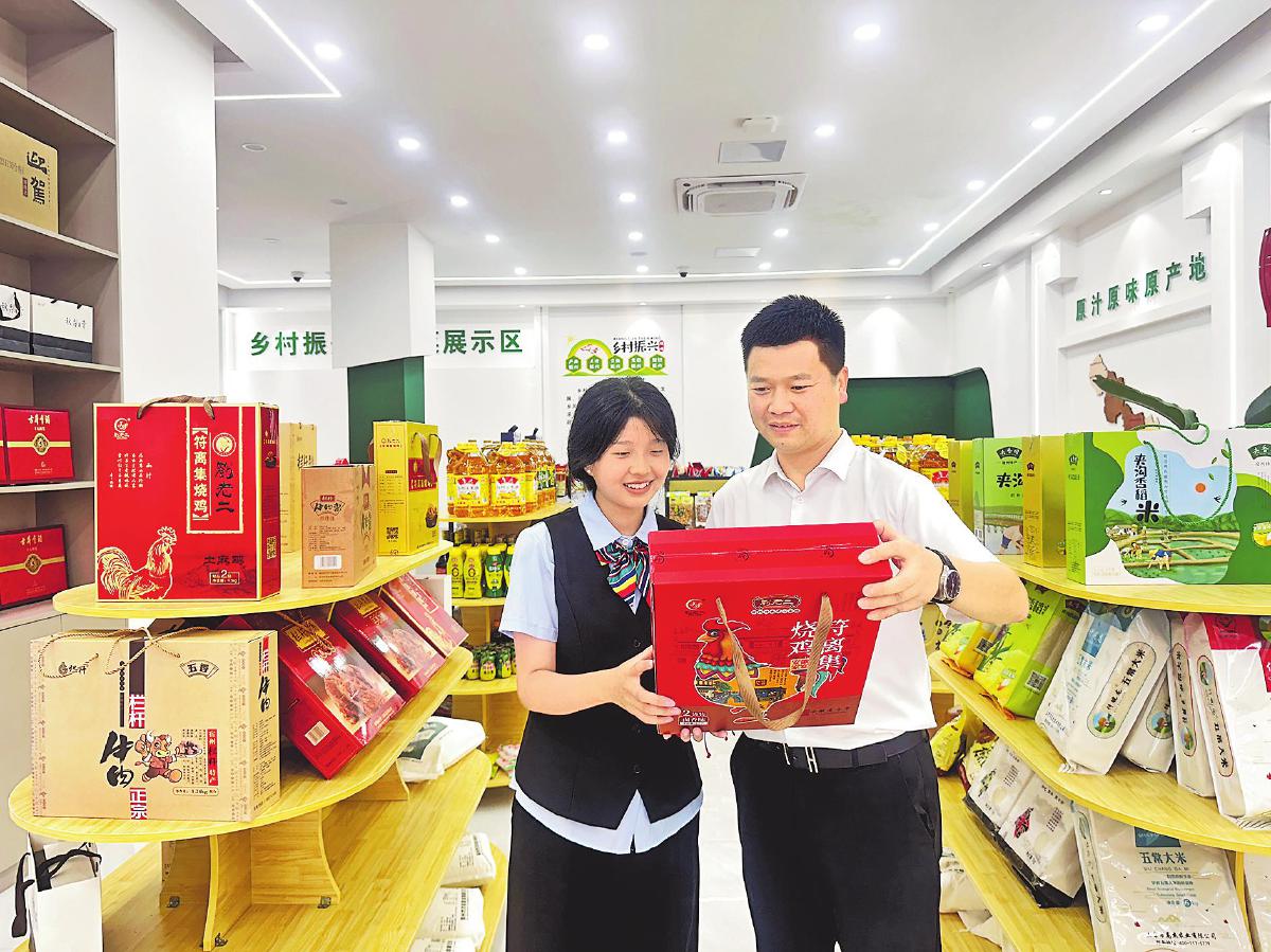 宿州邮政乡村振兴农特产品展销馆吸引市民驻足选购农产品。□毛圣茹 摄