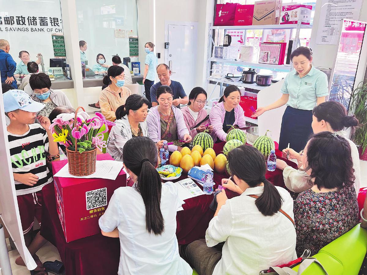 “大家扫这个码,就可以进团购群参加活动!”8月22日,江苏省常州市邮政分公司薛家支局启动“万点同庆”邮政农品地推活动,吸引“邮乐小店”团购群成员到店296人,发放金融宣传折页礼品券200余份,现场销售“邮乐优鲜”自提商品41单……“919”邮政农品节期间,常州邮政提前布局,结合本地优势建设培育“网点助农团购群”,搭载“生态金融”场景,丰富引流活动方案。截至8月底,常州邮政已有73个网点成功开展“万点同庆”活动,其中36个网点开展活动超过3场。
