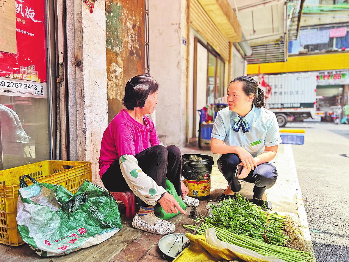 黄小妹,人如其名,如同邻家妹妹一般,她由内而外散发出的谦和、平静、乐观,让人很安心。跟着她去附近菜市场拜访客户,她很自然地与卖肉的大哥、卖菜的大姐打招呼、唠家常。神奇的是,她所到之处,个个商户都是喜笑颜开地与她互动,好像是认识了很久一样。