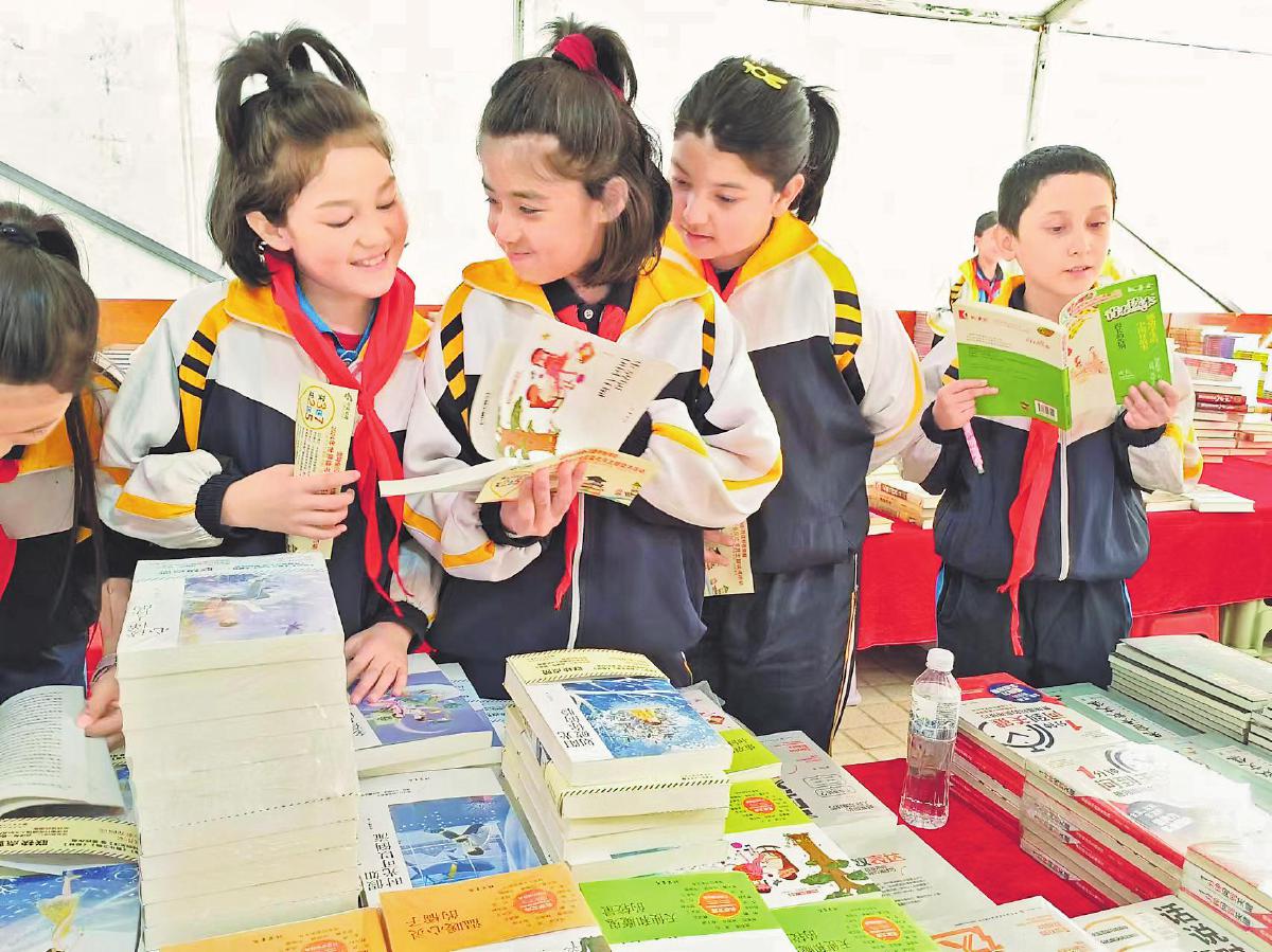 近日,由新疆维吾尔自治区喀什市委宣传部、市教育局牵头,喀什地区邮政分公司承办的“阅读新时代·喀什向未来”图书赠阅惠民活动启动仪式在喀什市第十一小学举行。喀什地区分公司捐赠了价值6万元的图书和价值80万元的图书优惠券,并现场进行图书展销,进一步丰富学校图书阅览室藏书,培养学生良好的阅读习惯,让他们在读书中获得更多知识,健康快乐地成长。图为喀什市第十一小学的学生徜徉在书海中。