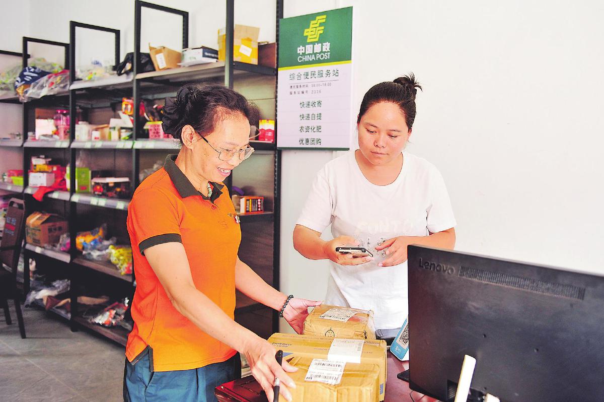 “以前我们取快递都要去镇上,现在邮政把站点建到了我们村里,所有快递在家门口就可以直接取,大大节省了时间。有时候在外地工作的家人想吃点儿家乡土特产,也可以通过服务点马上寄出去,大大方便了我们!”9月15日,村民李美英走进湖南省湘西土家族苗族自治州花垣县龙潭村邮政综合服务站点取快递时,乐呵呵地说。