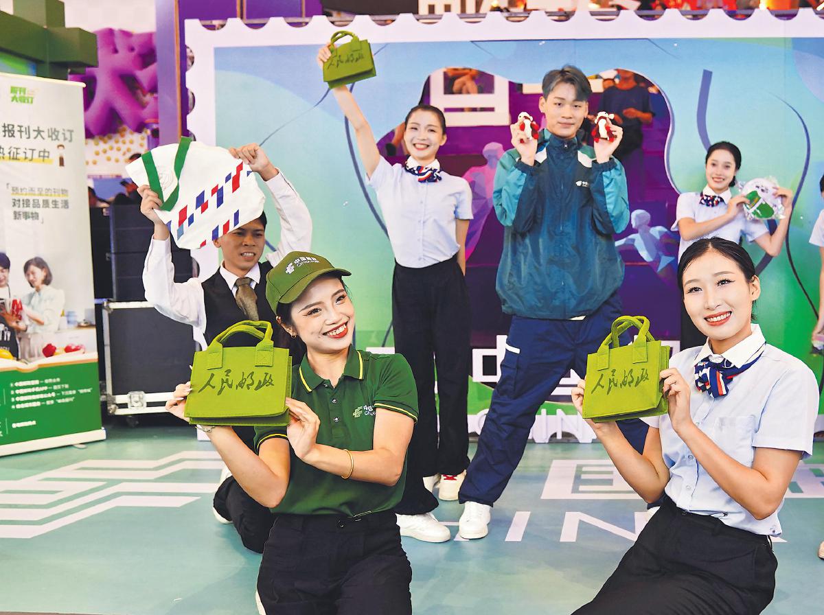 10月7日,海南省邮政分公司以“美好生活‘邮’乐同享”为主题,在海口友谊阳光城举办第55届世界邮政日宣传活动。活动现场设立临时邮局,推出“邮政故事知多少”互动游戏和“邮”文化潮流驿站快闪舞蹈表演,让广大市民在参与互动中更好地了解和体验邮政的优质服务。图为“邮”文化潮流驿站快闪舞蹈表演场景。