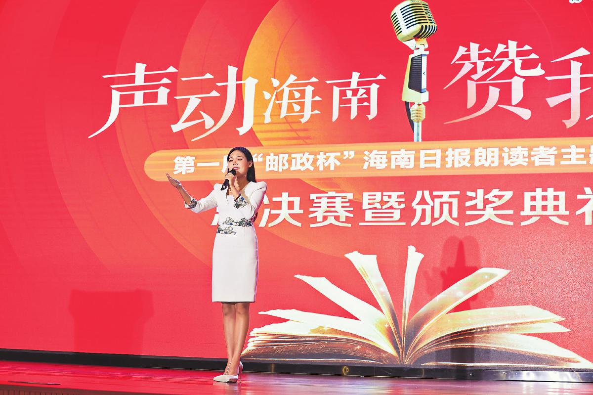 10月9日晚,由海南省邮政分公司与海南日报报业集团联合主办的“声动海南 赞我中华”第一届“邮政杯”海南日报朗读者主题活动总决赛暨颁奖典礼在海南大学举行,18组优胜选手入围总决赛,角逐金、银、铜话筒奖和“优秀朗读者”称号。
