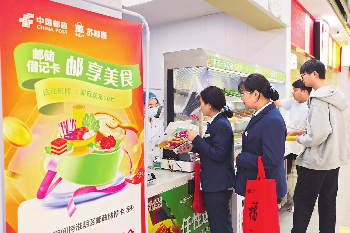 自9月开始,江苏省淮安市邮政分公司开始入驻淮阴师范学院内的“文会园商业综合体”。该综合体总面积达1700平方米,涵盖餐饮、娱乐、美发、图书等配套店铺近30家,服务全院师生约2万人。依托该综合体,淮安市分公司叠加了邮政寄递、文创、普惠金融等服务,以学生实际需求为出发点,助力美好、便捷的校园文化建设,深度服务高校师生的日常学习生活。