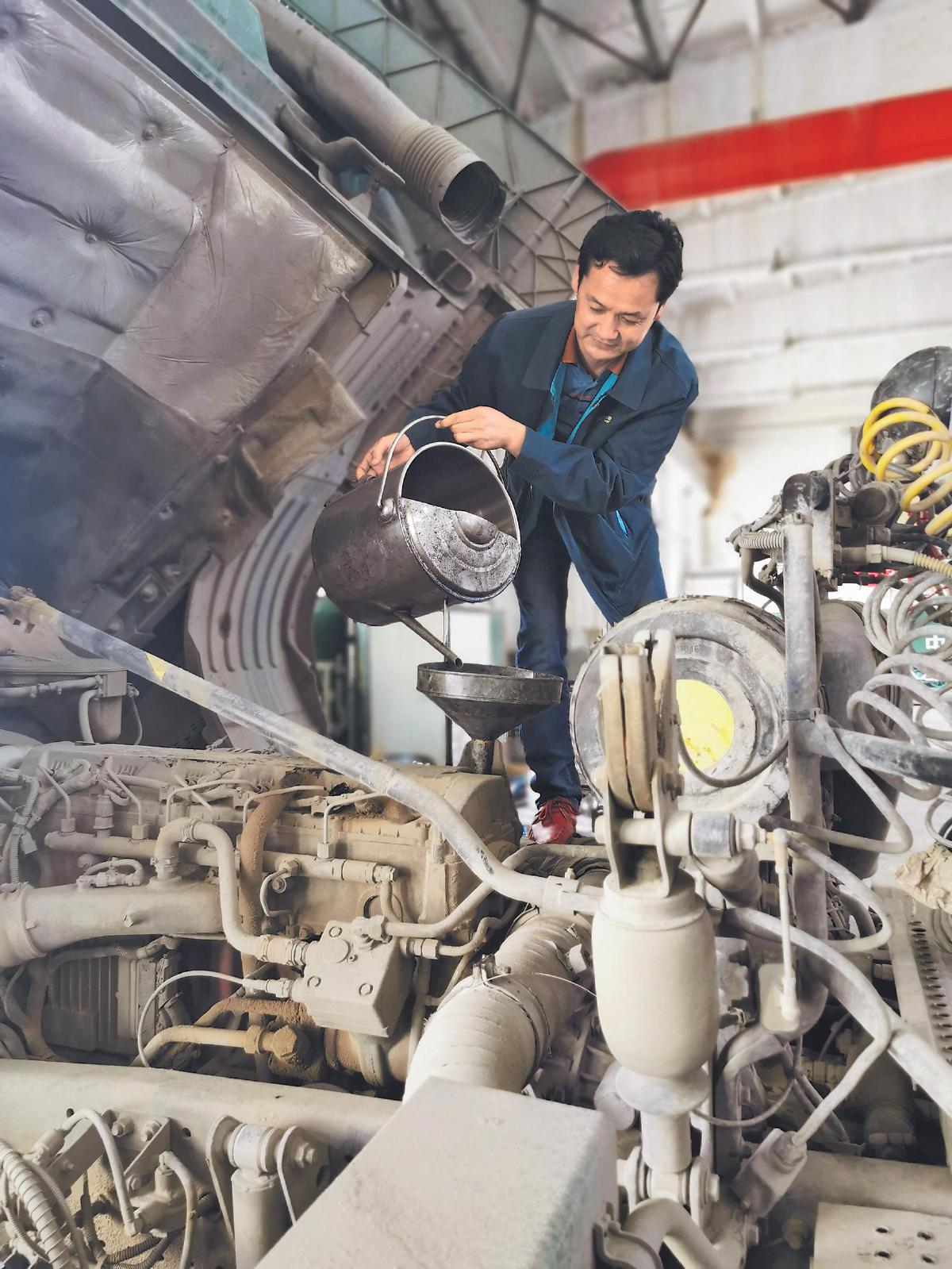 常年奋战在邮政运输战线,乔毅军练就了过硬的业务技能。安全行驶190余万公里无事故的背后,是他对安全的极致追求和对工作的无限热爱。乔毅军在邮路上要应对各种极端复杂的天气,冬季低温、冰雪等会对车辆性能带来很大影响,只有通过细致的检查,才能及时发现潜在风险,从而避免在行驶过程中出现车辆故障或可能导致的事故。检查不仅包括常见的轮胎、灯光、刹车系统等基本项目,还需要特别检查皮带紧张度、方向盘游动间隙、制动系统工况等。“行车时要注意力集中,防止发生意外,避免不必要的损失。对汽车日常检修项目要做好登记,对近期汽车出现的故障进行综合分析,认真查找造成故障的原因,分析故障隐患出现的趋势,提前预防,及时做好维护保养工作,避免汽车在行驶途中突发故障。”正是这样一丝不苟的工作态度成就了乔毅军的优秀业绩,他说:“邮车就是自己的另一个伙伴,只有细心照料和体贴入微的关爱,它才不会把人扔在路上。”
