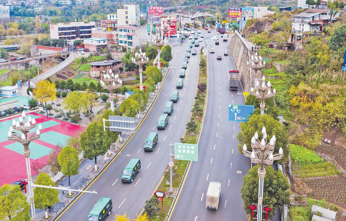 12月12日下午,一条“绿色长龙”驶过贵州省赫章县高速收费站路口。这是贵州邮政为赫章邮政配备的27辆新能源汽车。接下来,赫章邮政将激发新车新动能,进一步打通快递进村“最后一公里”,助力“黔货出山”,让当地群众在家门口更方便地收快递、寄包裹。