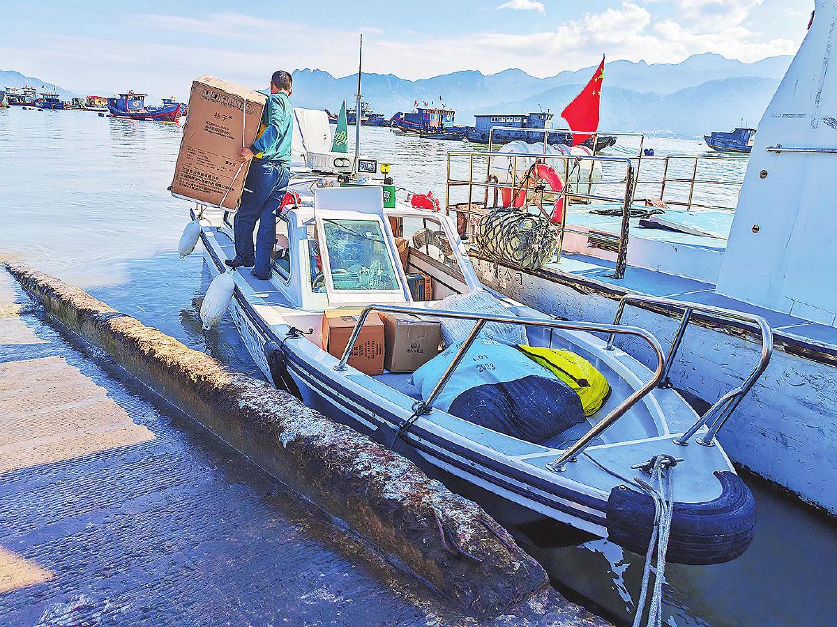 在三都镇青山岛虾荡尾村码头,石进全带来了渔民的期盼。 □吕文礼 摄