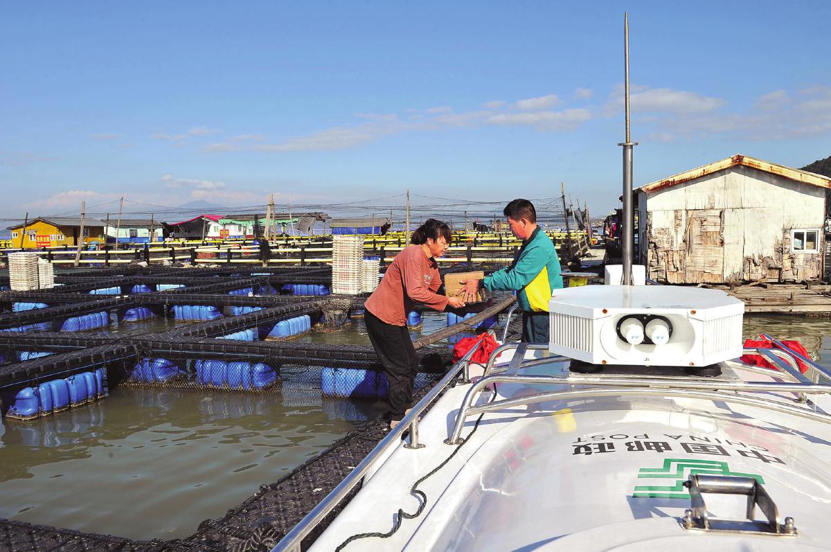 石进全将邮件送达海上邮政综合便民服务站。 □曾祥文 摄