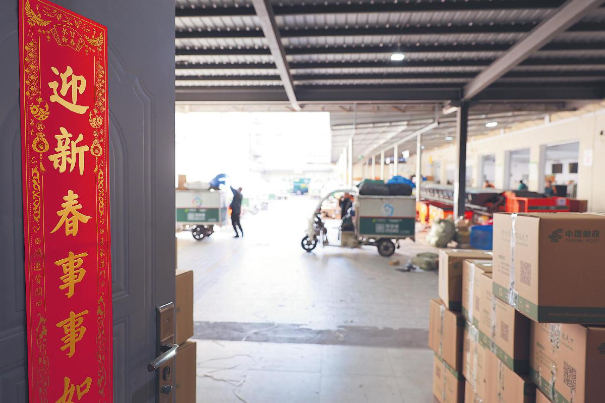 农历新年的脚步越来越近,百家湖揽投部内已经贴上了春联。□柏滨丰 摄