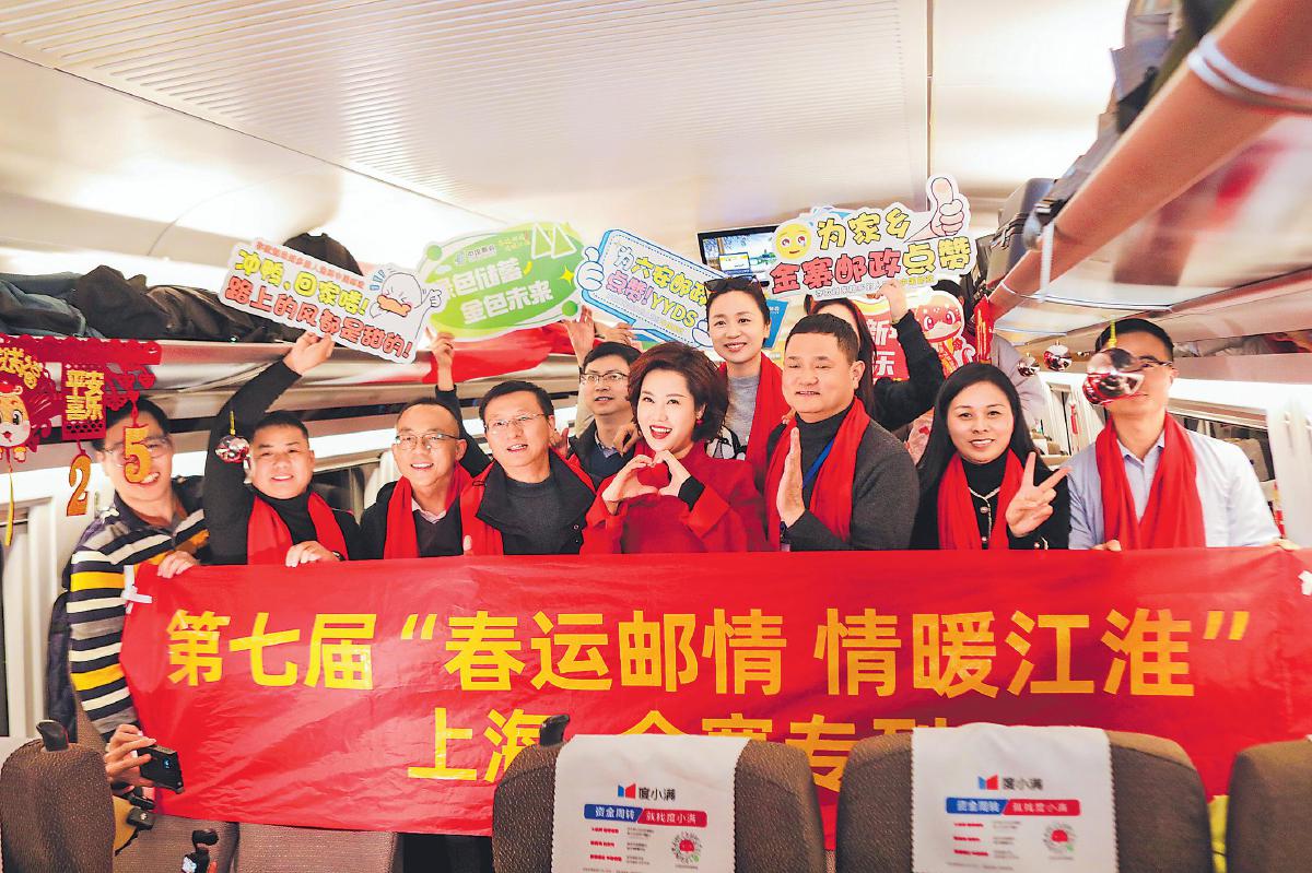 1月22日,安徽省第七届“春运邮情 情暖江淮”活动迎接皖籍务工创业人员返乡专列(厢)首发仪式在上海松江、江苏无锡、浙江台州三地同步举行,当日开行的“上海—金寨”专列和“无锡—太和”“台州—青阳”列车专厢免费承运776名皖籍务工人员返乡过年。本届活动预计开通专列(专厢)30趟,接回返乡务工创业人员6500余人。