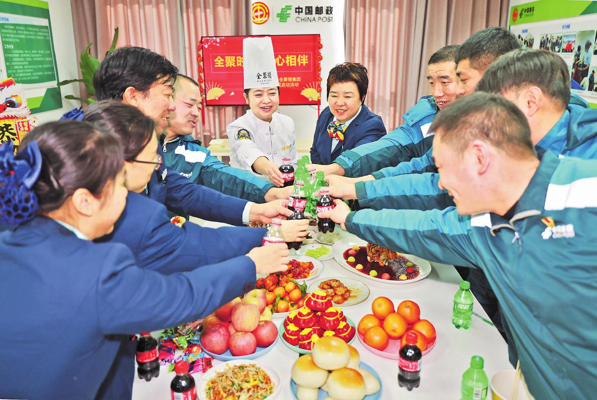 1月20日,北京邮政联手全聚德集团共同启动暖心饭送基层活动。启动活动在东四邮政支局举行,全聚德集团特别安排了曾获“全国五一劳动奖章”“首都劳动奖章”的厨师现场展示拿手菜技艺绝活,赢得了邮政员工的阵阵掌声。大家还围坐在一起聊家常、话新春。据悉,从1月21日开始,全聚德年夜饭礼盒和丰泽园主食礼盒将陆续配送到北京各邮政网点,为一线员工送上来自企业的新春祝福与关爱。