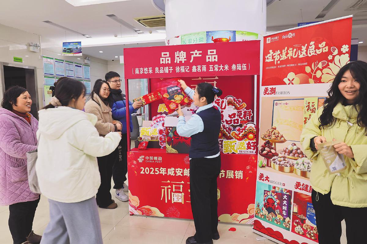 湖北咸宁邮政在网点开设年货展销专区,吸引客户在线下单。□陈快 摄