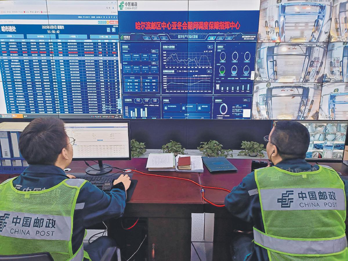 高效、精准服务的背后,有一批默默无闻的幕后英雄,他们奋战在投递路上,拼搏在邮件处理一线,坚守在监控系统旁边……在服务亚冬会过程中,黑龙江省分公司根据各赛区主题邮局位置,对赛时邮件处理、物品寄递、邮路运行进行整体规划,统一配置专人、专车,落实邮路安全措施;强化抵离服务保障,为抵离物品提供绿色通道,客服人员实时跟踪运输轨迹,确保邮件安全抵达;围绕亚冬会赛事用邮需求,在两大赛区所在地建成仓储物流中心,配备专业管理人员,全力开展仓内管理、车辆管理以及通清关等服务工作。