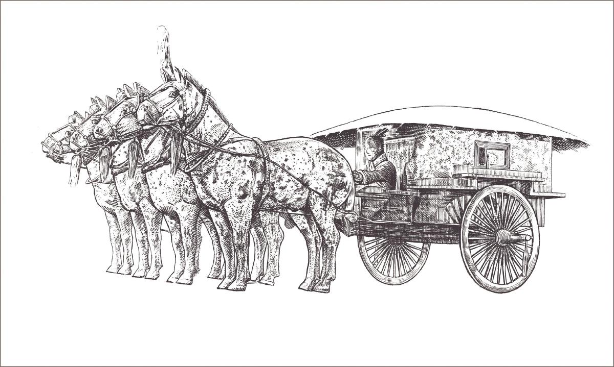 纪念张中的“铜车马”图案是新中国第一代雕刻师孙鸿年于1989年专门为《秦始皇陵铜车马》邮票发行所做的一幅手工雕刻作品,并未用于邮票图稿,故此前也从未与公众见面。其布线精准,雕刻细腻,层次丰富,是雕刻作品中的精品。姜伟杰、阎炳武、郝欧三位雕刻师共同从北京邮票厂所留存的上百块手工雕刻钢板中精心挑选,并最终选定其为这次特别纪念张的主图。