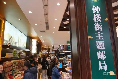 开业当天,钟楼街主题邮局内人头攒动(央广网记者 张洁 摄)