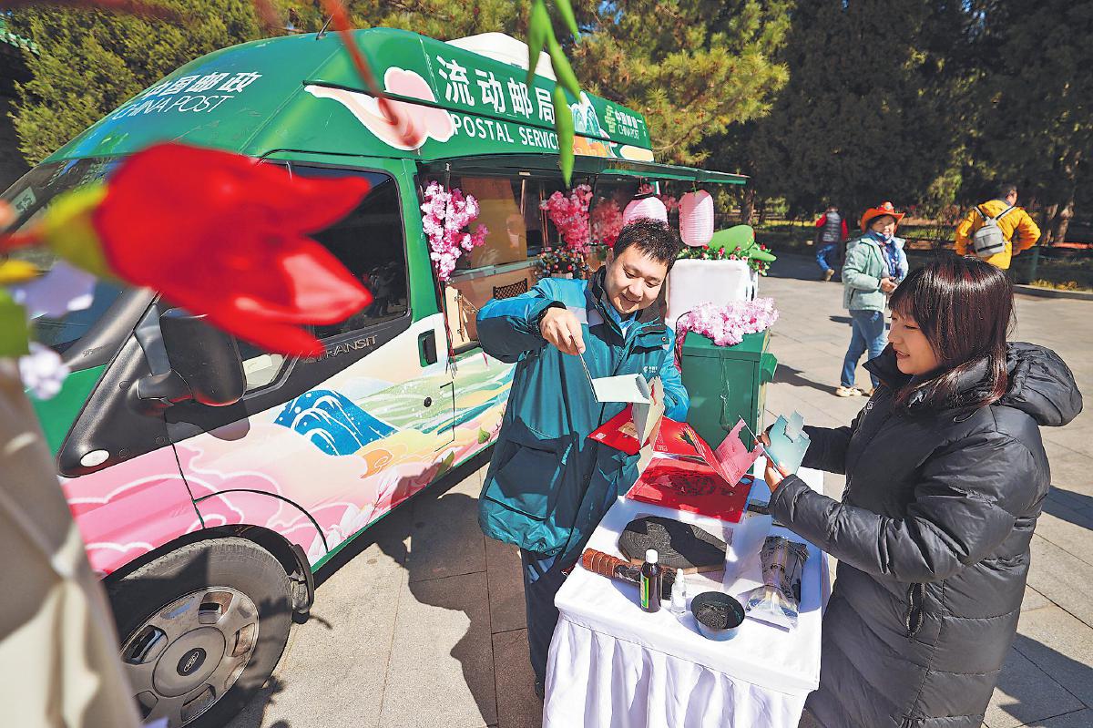3月17日,“花开北京”2025北京郁金香文化节暨中山公园第30届春花·郁金香文化节开幕。活动期间,园内首次推出郁金香主题文化市集,北京市邮政分公司以临时邮局服务车为载体打造主题邮局品牌矩阵,通过展销文创邮品参与这场春日盛会,实现邮政文化与园林景观的时空对话,为郁金香花海增添人文魅力。
