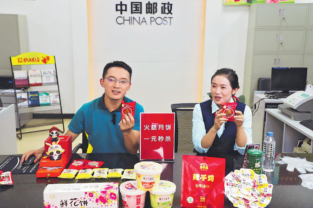 邮政主播在“曲靖美食”直播间分享当地特色农产品。