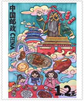 (二)符合邮票设计语言:设计效果应考虑按邮票尺寸等比例缩小后的视觉呈现,面值、铭记等元素摆放应按照邮票的位置关系予以安排布局。