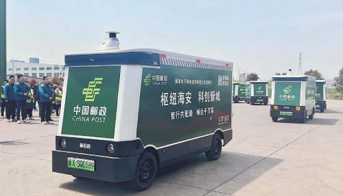 日前,江苏省海安市“智启新程 速达未来”快递无人车交接启动仪式在该市寄递物流共配中心举行。海安市商务局将11辆快递无人车交付给市邮政分公司使用,海安寄递物流向智能化、自动化、绿色化转型迈出关键一步。据了解,自1月启动无人车配送测试以来,海安邮政已陆续开通22条无人配送邮路,智慧物流网络初步形成。