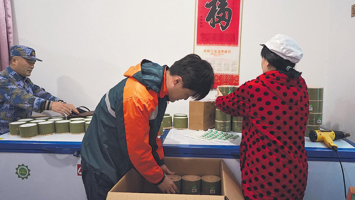 揽投员来到茶叶合作社,上门揽收茶叶包裹。 □陈茜茜 摄