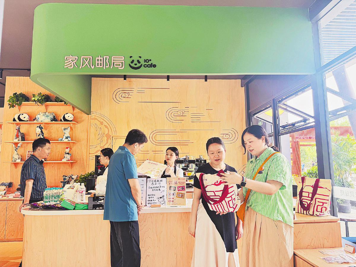 70多平方米的邮局空间内,设有集邮文创产品展示、休闲社交、文化书信传递三大功能分区。在这里,游客不仅能选购集邮文创产品、品尝香醇咖啡,还能聆听家风故事、打印一枚属于自己的家风明信片。通过喜马拉雅有声阅读功能,“邮政+声音+科技”的跨界体验让家风故事更加生动有趣。有声明信片打印、熊猫家风邮局集章打卡更是游客们最喜欢参与的环节,通过“一枚可创作的明信片”与“一枚可集的章”,家风文化变成可参与、可收藏的情感符号,让游客真正感受到“盖下的是印章,留存的是家风”。