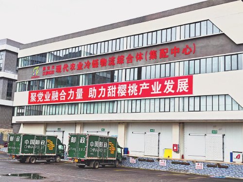 农产品上行,冷链是关键。在汉源,一套严密的分级冷链运输体系高效运转:40辆村镇转运车化身田间“移动收集站”,每日穿梭于乡野之间,快速归集分散在各村的甜樱桃。随后,由10辆专业温控冷链车无缝衔接,接驳至干线邮路,保障鲜果在长途运输中“锁住”鲜度。