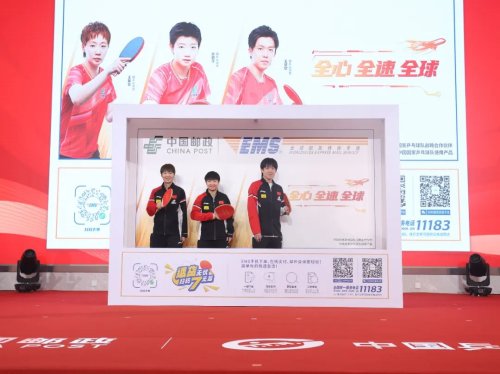 国乒世界冠军参与中国邮政速递物流(EMS)最新封套的发布。