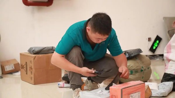 中午12点,李德双驾驶着装满快递的车辆,经过近一个小时的颠簸,顺利抵达打朝村。他丝毫顾不上旅途的疲惫,立刻着手将一个个包裹从车上卸下,仔细对照收件人信息逐一核对,生怕出现任何错漏,确保每一件快递都能准确送到村民手中。