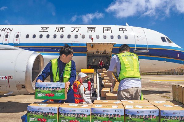近日,4架满载1500公斤新鲜番茄的无人机从重庆市武隆区双河番茄基地起飞,10分钟后平稳抵达武隆仙女山机场,经转乘民航航班,2.5小时后直达北京,实现了高山农产品从“枝头鲜”到“餐桌鲜”的当日达,较传统运输时效提升3天,损耗率降低超30%。