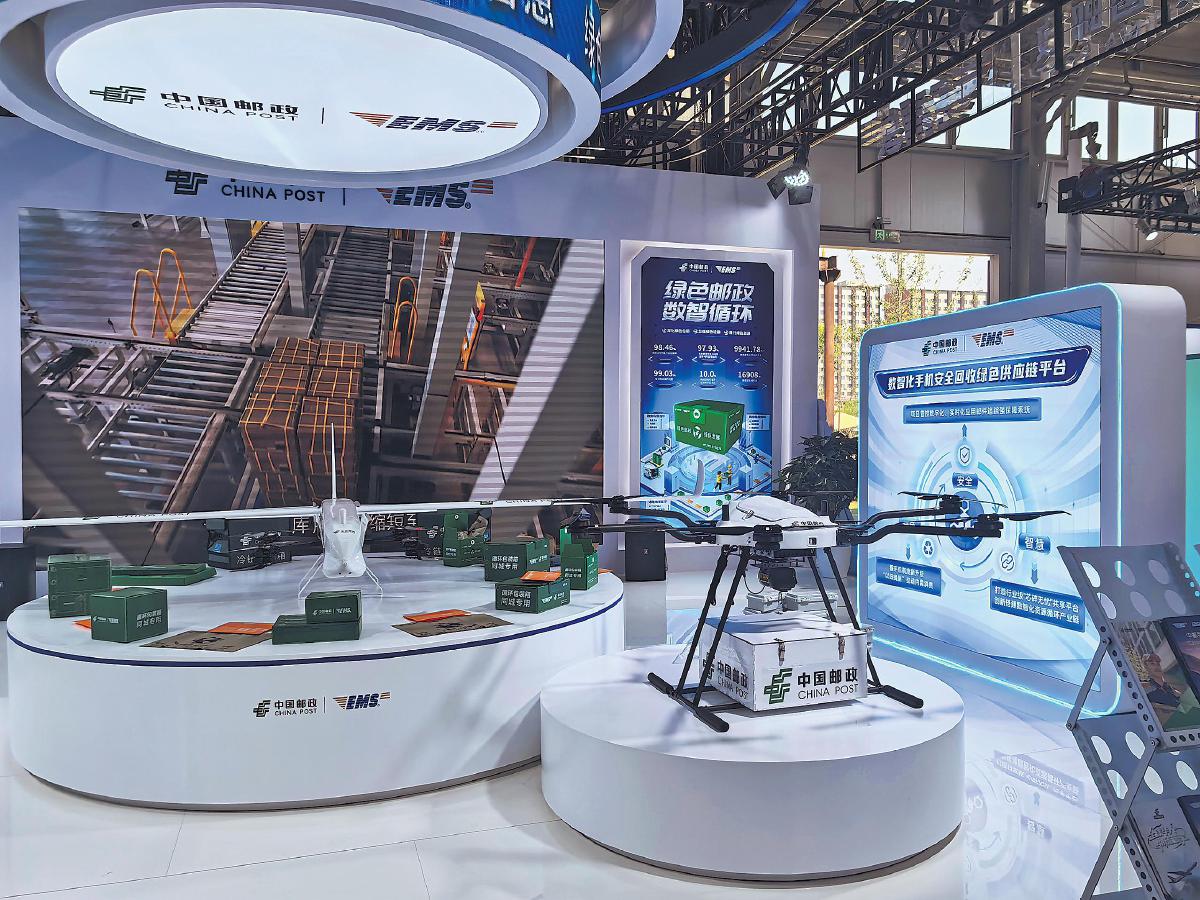 中国邮政速递物流市场部负责人告诉记者:“今年是中国邮政速递物流连续第十年在服贸会设立展台。这次展会以智慧、安全、绿色为主题,为大家带来不一样的展品和感受。比如,我们展示了覆盖‘天—空—地—人’的数字化生态系统,基于AI大模型的客户服务平台更实现了98%的咨询秒级响应。”