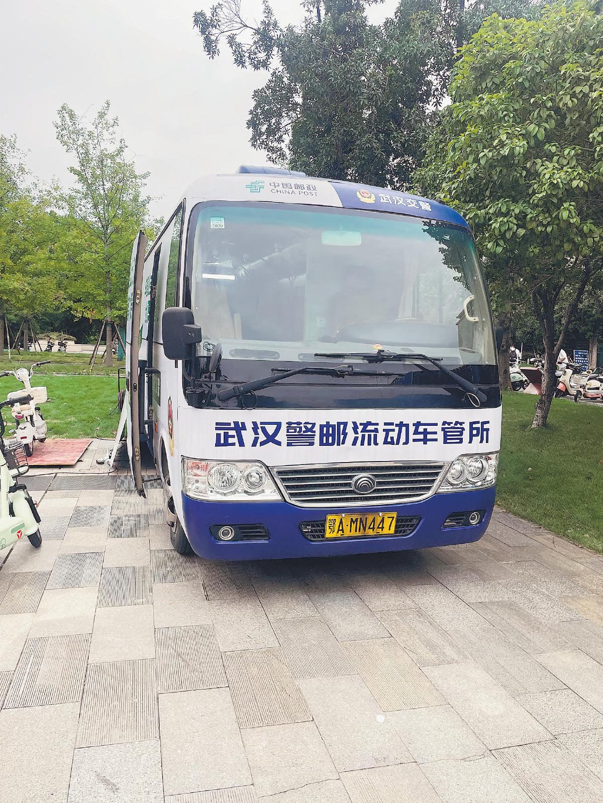 近期,湖北省武汉市邮政分公司与市公安局交通管理局联手打造的“警邮流动车管所”,陆续开进江汉大学、武汉科技大学、华中农业大学等高校,提供车辆号牌办理、交通安全咨询等服务,获得师生们的点赞。