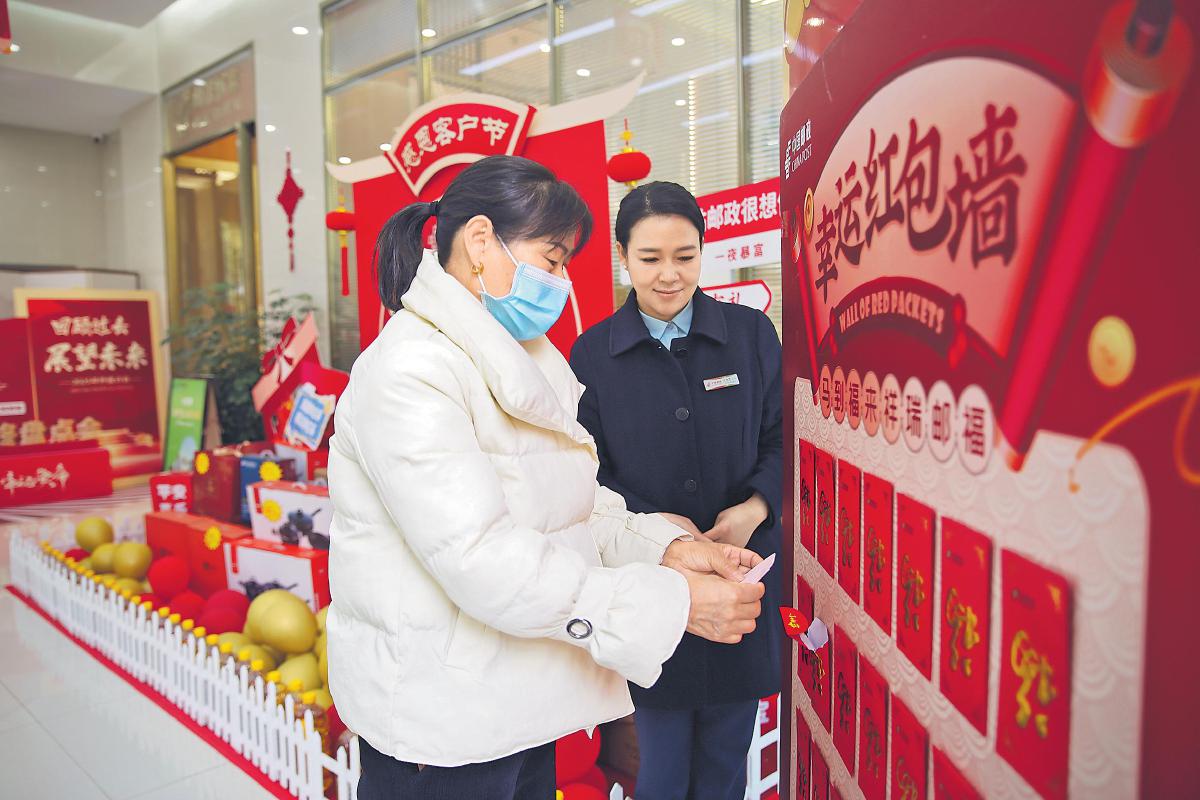 元旦佳节临近,为回馈广大客户长期以来的支持,营造喜庆祥和的节日氛围,湖北省十堰市邮政分公司组织各支局网点开展“一马当先”迎新年厅堂活动。各网点精心布置,张贴“一马当先”窗花和“福”字,积极邀约客户参加新年抽红包、兑好礼等活动,进一步增强了客户黏度,提升了客户对邮政服务的认同感。