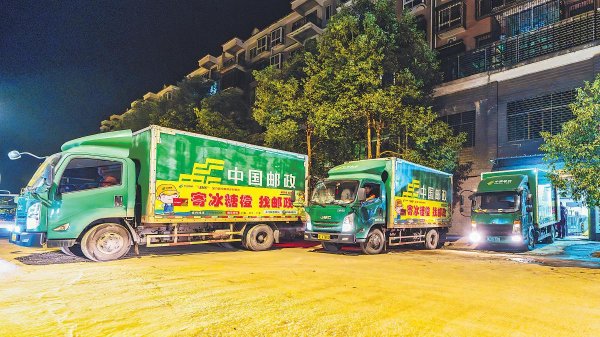 满载冰糖橙的邮车披星戴月出发,把湘南红壤上的甜蜜送往千家万户。
