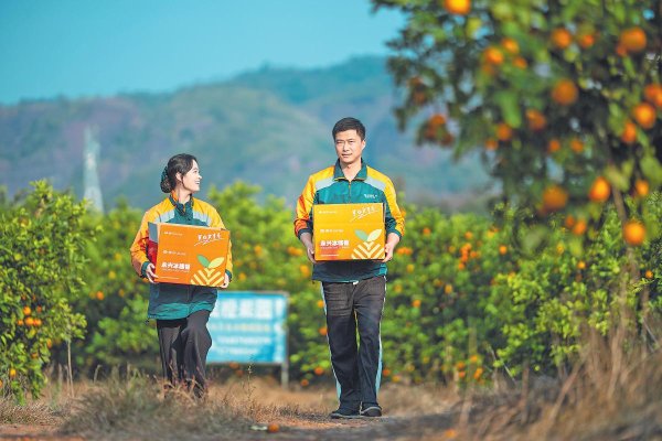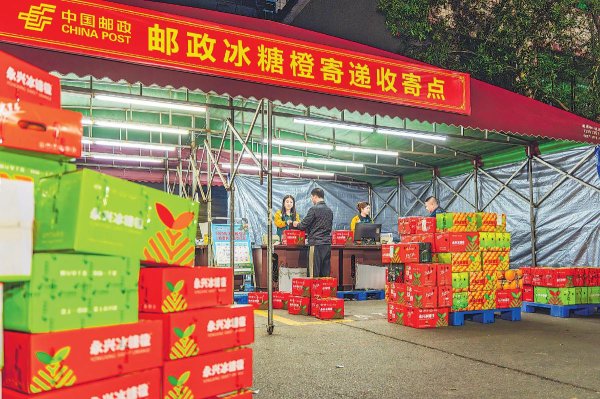 邮政员工把“最后一百米”缩短到零——走进果农院落,将刚离枝头的冰糖橙直接装车,家门口即刻变“始发站”。