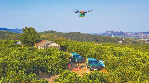 无人机腾空而起,30分钟“闪送”枝头鲜橙直达邮件处理中心。