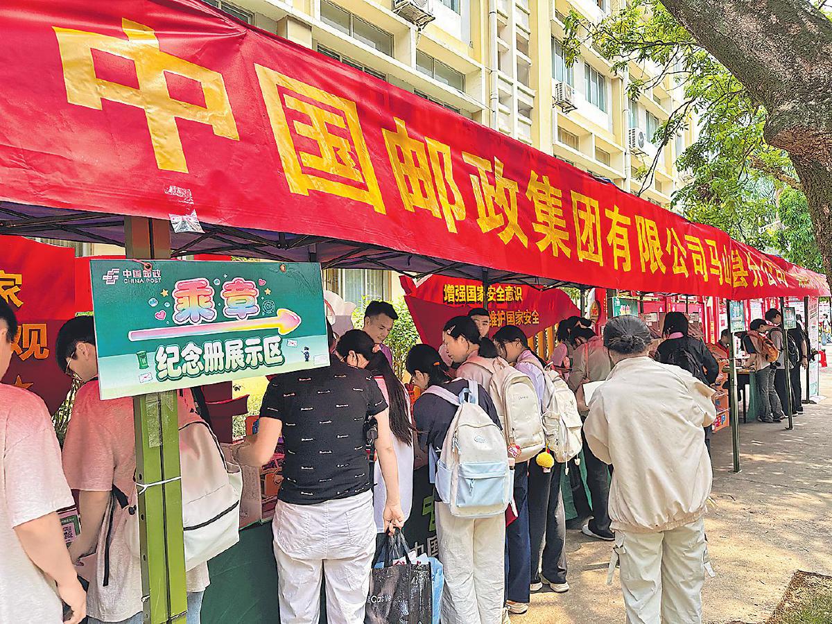 活动中,马山邮政设置集章打卡、毕业纪念册定制、文创展销、图书订阅、寄递服务咨询、学生储蓄卡办理等服务区域,全方位满足学生的毕业纪念、学习与生活需求。其中,特别设置的“集章邮礼”环节吸引众多学生参与。学生们依次前往六个服务区域完成互动体验,集齐“启章、乘章、撷章、留章、聚章、满章”6枚专属印章,就能兑换活动精心准备的纪念礼品,在趣味互动中定格成年美好时刻。
