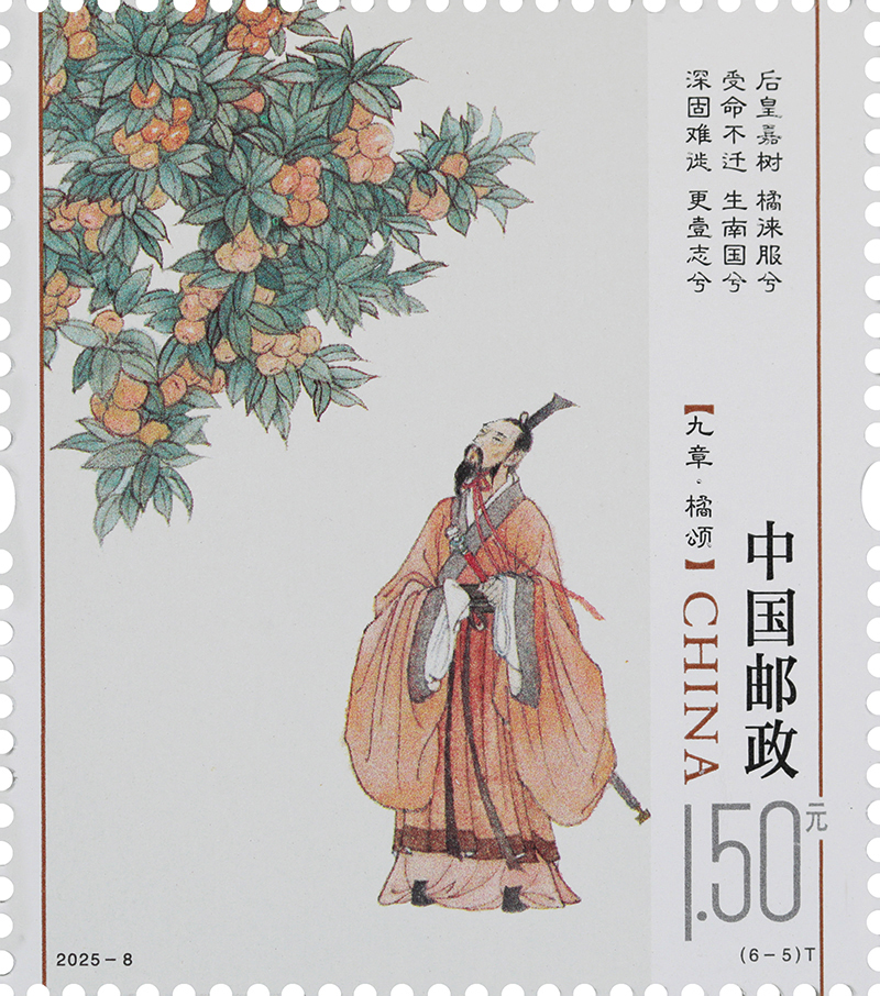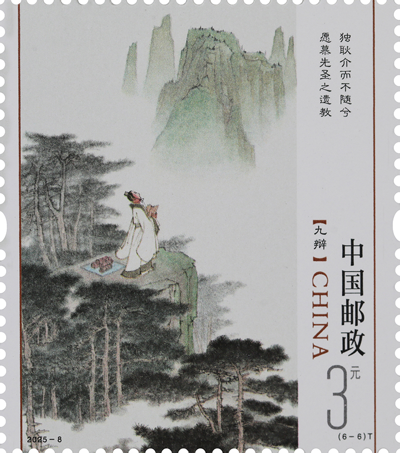 中国邮政定于2025年5月31日发行《楚辞》特种邮票1套6枚。详情如下: