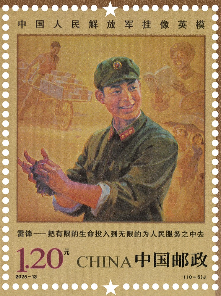 中国邮政定于2025年8月1日发行《中国人民解放军挂像英模》纪念邮票1套10枚,邮票图案名称为:张思德、董存瑞、黄继光、邱少云、雷锋、苏宁、李向群、杨业功、林俊德、张超。全套邮票面值12元,计划发行数量450万套。