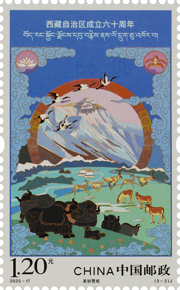 中国邮政定于2025年8月15日发行《西藏自治区成立六十周年》纪念邮票1套3枚。详情如下: